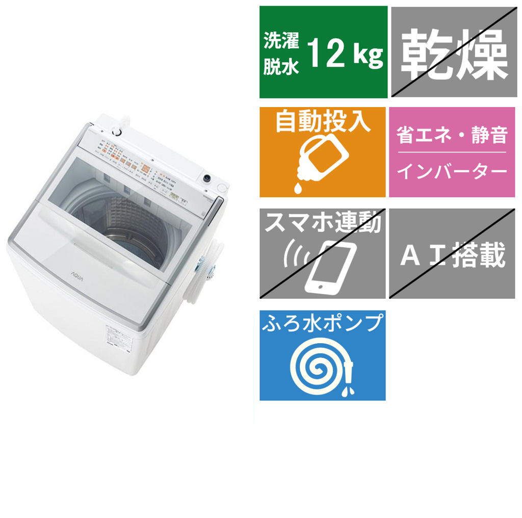 AQUA アクア 全自動洗濯機 泡フルウォッシュ搭載 VPシリーズ 12.0kg ホワイト系 AQW-VP12A(W) の 商品概要