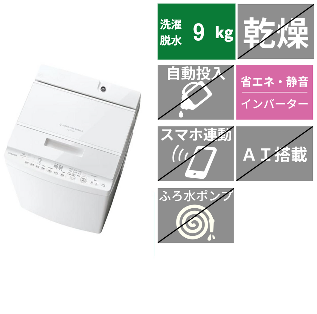 東芝 TOSHIBA 全自動洗濯機 ZABOON(ザブーン) 洗濯9kg グランホワイト AW-9DH5(W) の 商品概要
