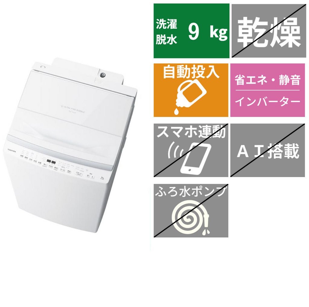 東芝 TOSHIBA 全自動洗濯機 ZABOON(ザブーン) 洗濯9kg グランホワイト AW-9DP5(W) の 商品概要
