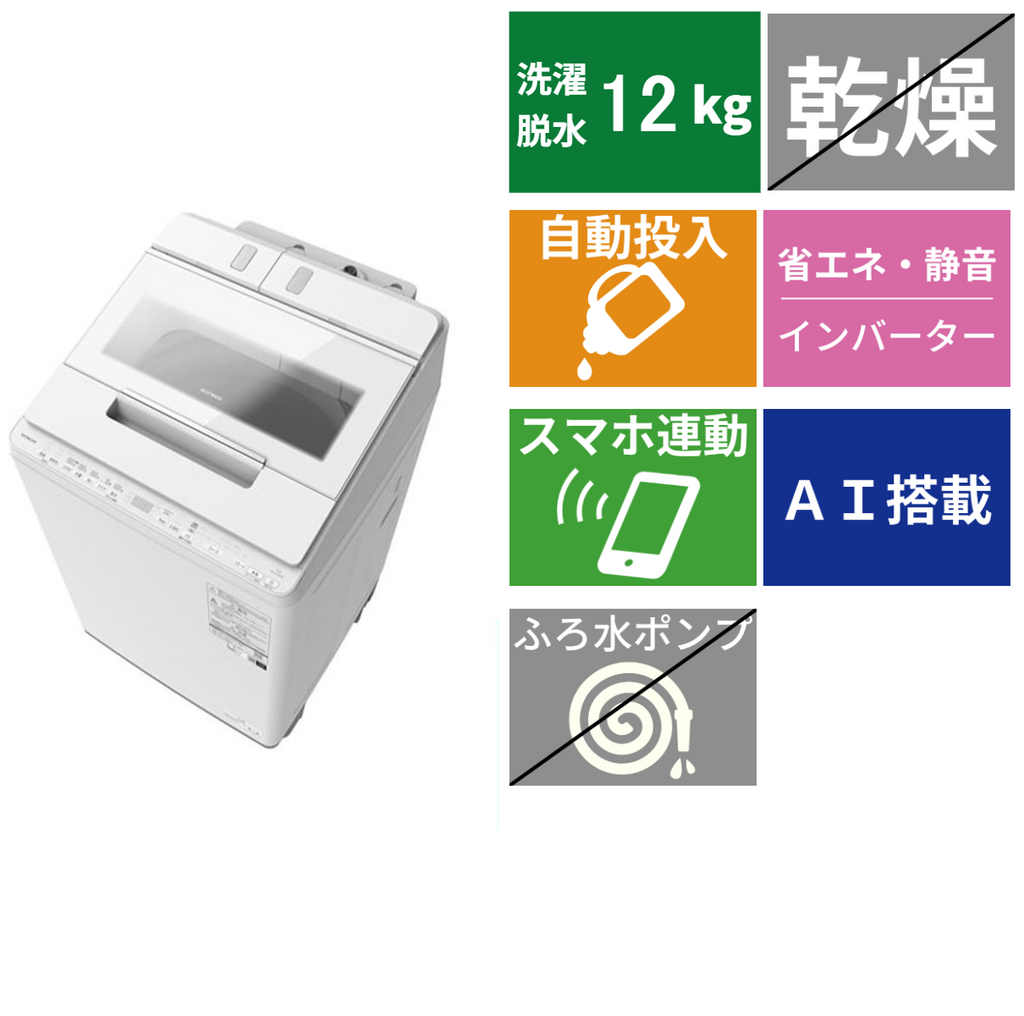 日立 HITACHI 全自動洗濯機 ビートウォッシュ 12kg ホワイト BW-X120M-W の 商品概要