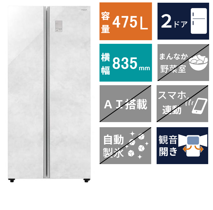 AQUA アクア 冷蔵庫(475L・幅83.5cm・フレンチドア(観音開き)・2ドア・クリアマーブルホワイト) AQR-SBS48A(W) の 商品概要