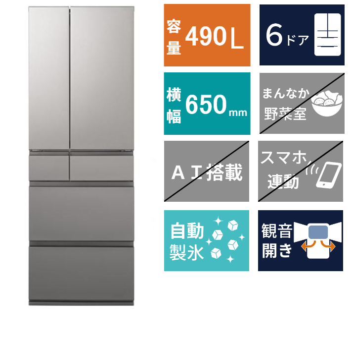 パナソニック Panasonic 冷蔵庫 EYタイプ(490L・幅65cm・フレンチドア(観音開き)・6ドア・シルバー) NR-F49EY3-S の 商品概要