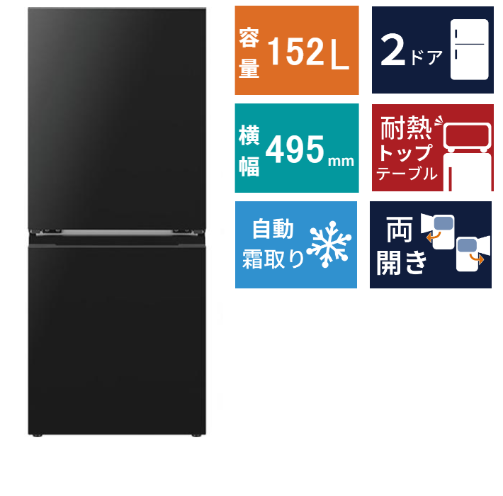 シャープ SHARP 冷蔵庫 (152L・幅49.5cm・左右開き(付け替え)・2ドア・マットブラック) つけかえどっちもドア SJ-TD15R-B の 商品概要