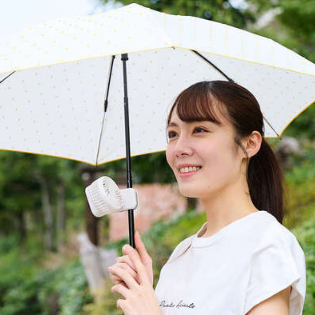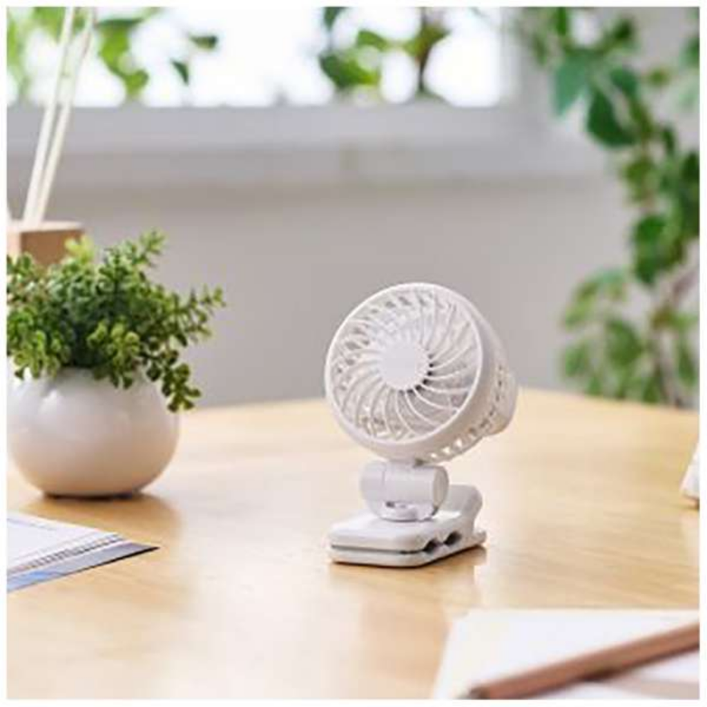 自由に挟んで取り付けて、どこでも快適空間に。日傘の中や車内、キッチン、オフィスなどさまざまな場所で使えるクリップ付きのミニファンです。360度回転するから、好みの角度・位置に調節可能。卓上ファンとしても使えて、シーンに合わせて活躍します。