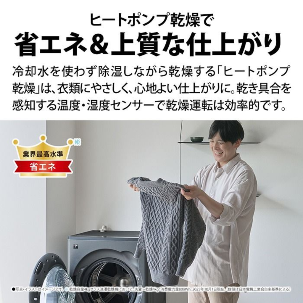 シャープ SHARP ドラム式洗濯乾燥機 洗濯8kg/乾燥4kg 左開き プラズマクラスター グレイングレー ES-8XS1-HL の 商品概要