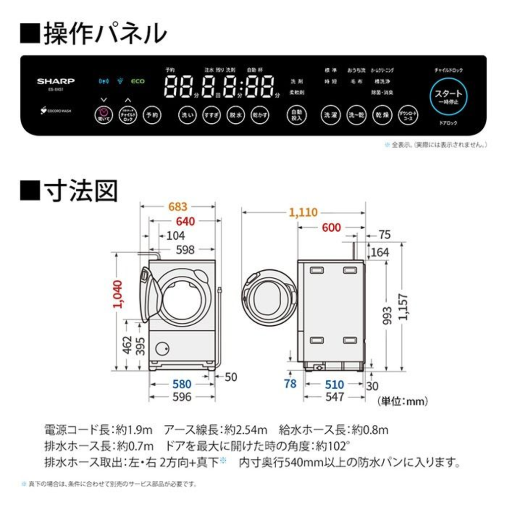 | 運転音(洗濯) [db] | 30db |