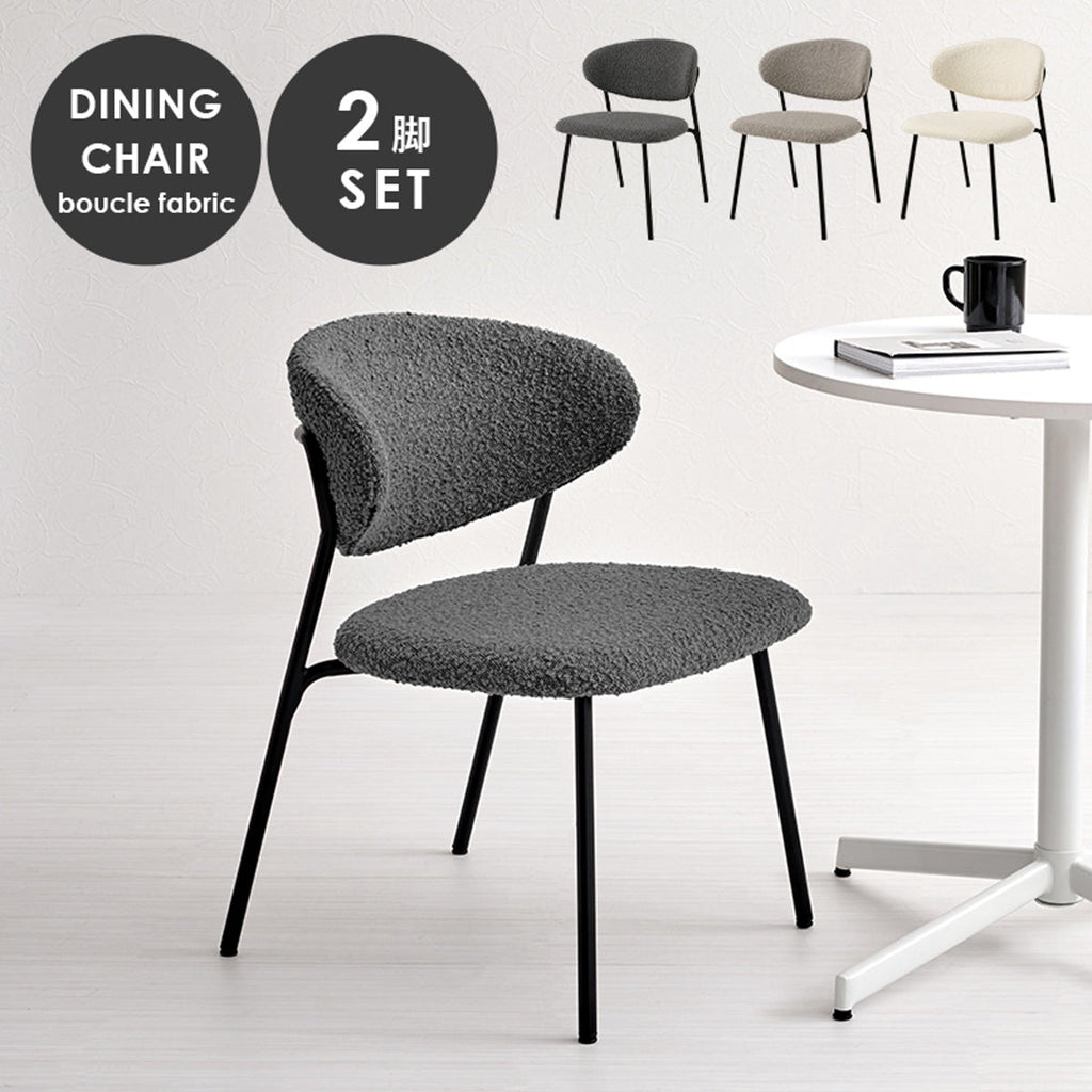 ぽこぽことした質感が特徴的なブークレ生地のダイニングチェア。細身のスチール脚と合わせてスッキリしつつも温かみのある空間を演出します。