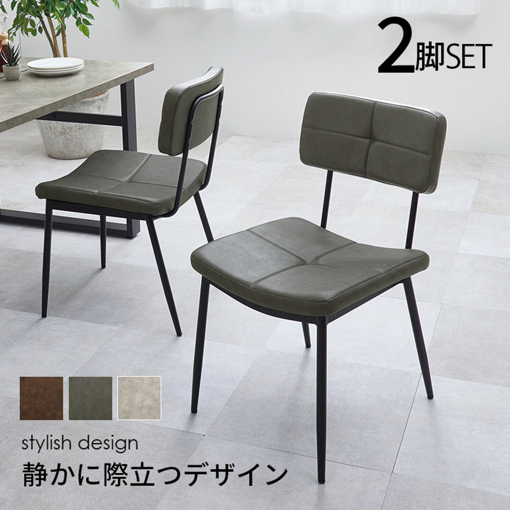 座面と背もたれの大きなステッチがアクセントとなるシンプルデザインのダイニングチェア。張地はヴィンテージ感のあるエイジング加工をした色合いです。