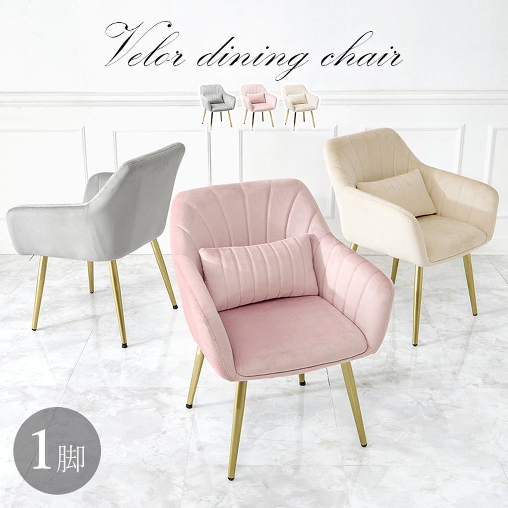 貝殻のようなデザインの座面にゴールドの脚がエレガントなインテリアチェア。チェアとおそろいの可愛いクッション付き