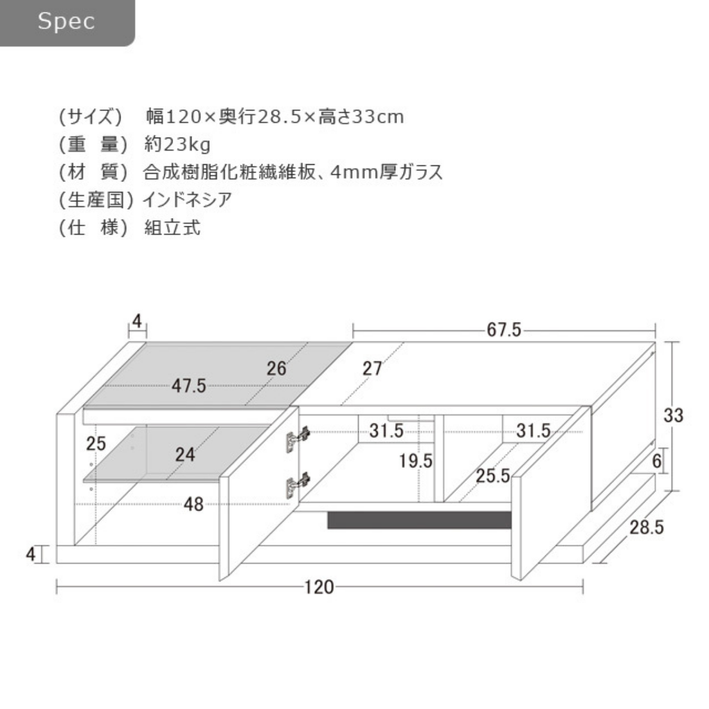 | サイズ | 約 幅120×奥行28.5×高さ33cm | |||