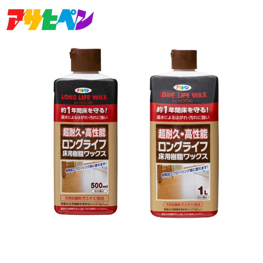 ●水に強いワックスですので、はく離しにくい場合があります。その場合は、はく離作業を数回繰り返してください。また、はく離剤によってはフローリングを傷める場合がありますので、あらかじめ目立たない部分で確認してください。