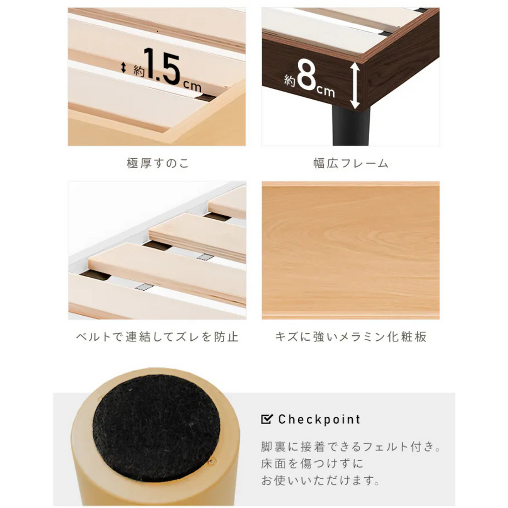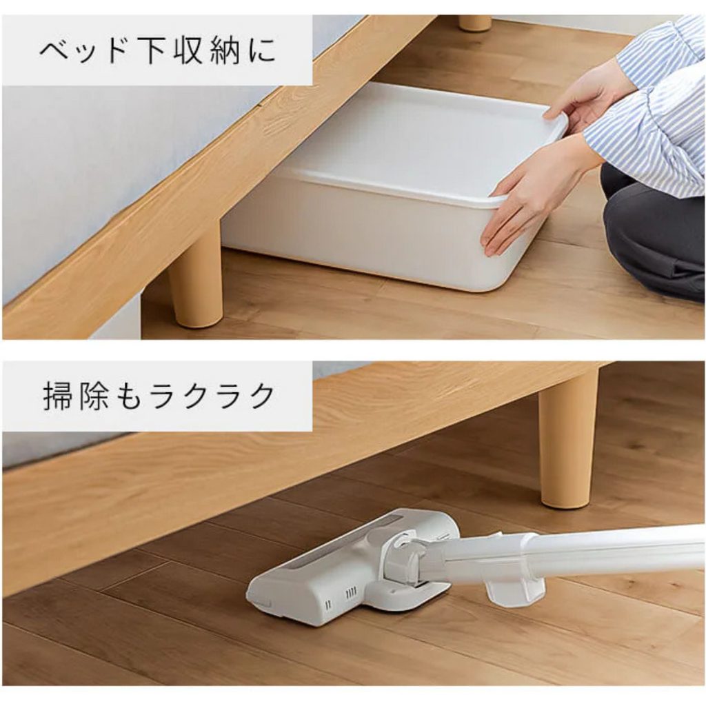 ベッド下の収納や掃除にちょうどいい高さ。