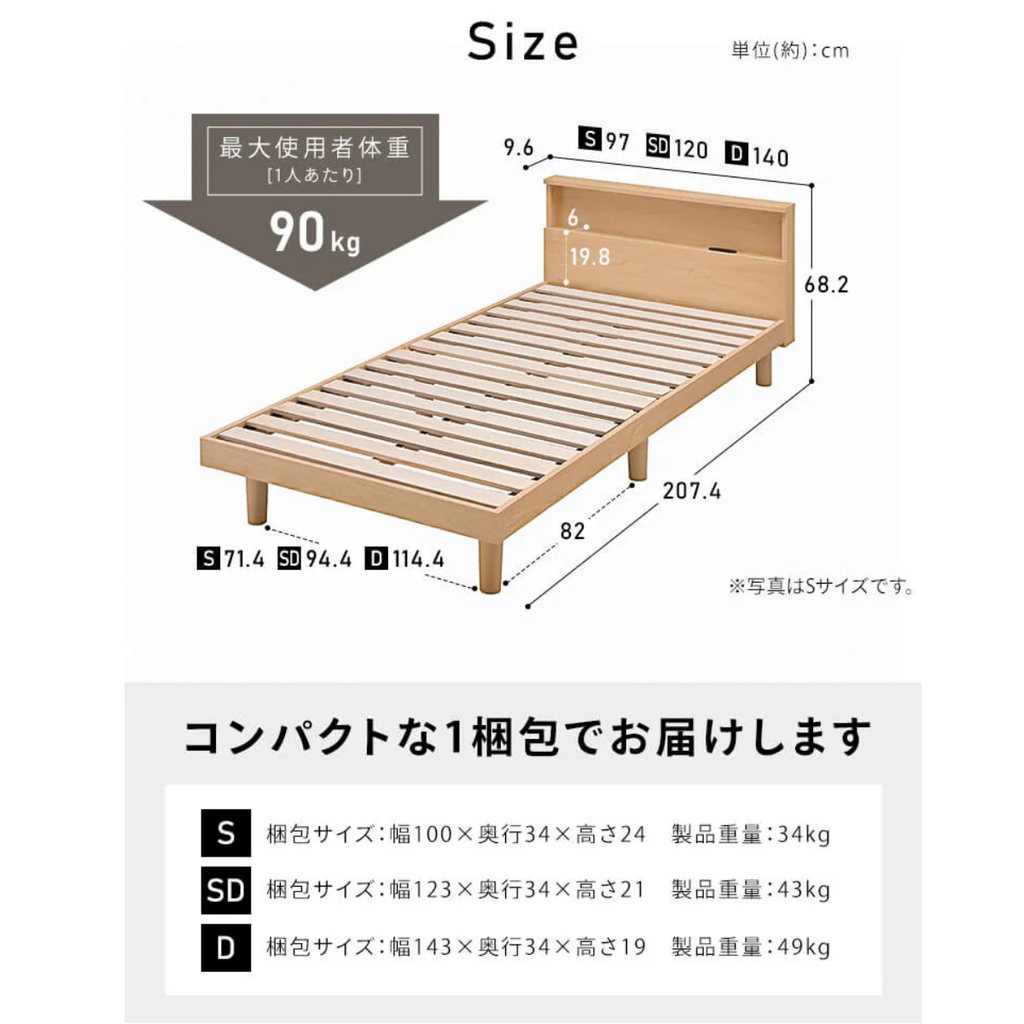 便利なコンセント付きすのこベッド【セミダブル】です。