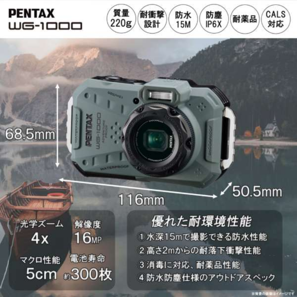 ■水深15mで連続1時間の水中撮影が可能な本格防水性能 IPX8(JIS保護等級8級準拠)、カメラを泥や埃から守る防塵性能 IP6X(JIS保護等級6級準拠)、2mの高さからの落下試験※1をクリアした耐衝撃性能を実現しています。また耐薬品性能を備え、医療現場や製造ラインでの消毒に対応。